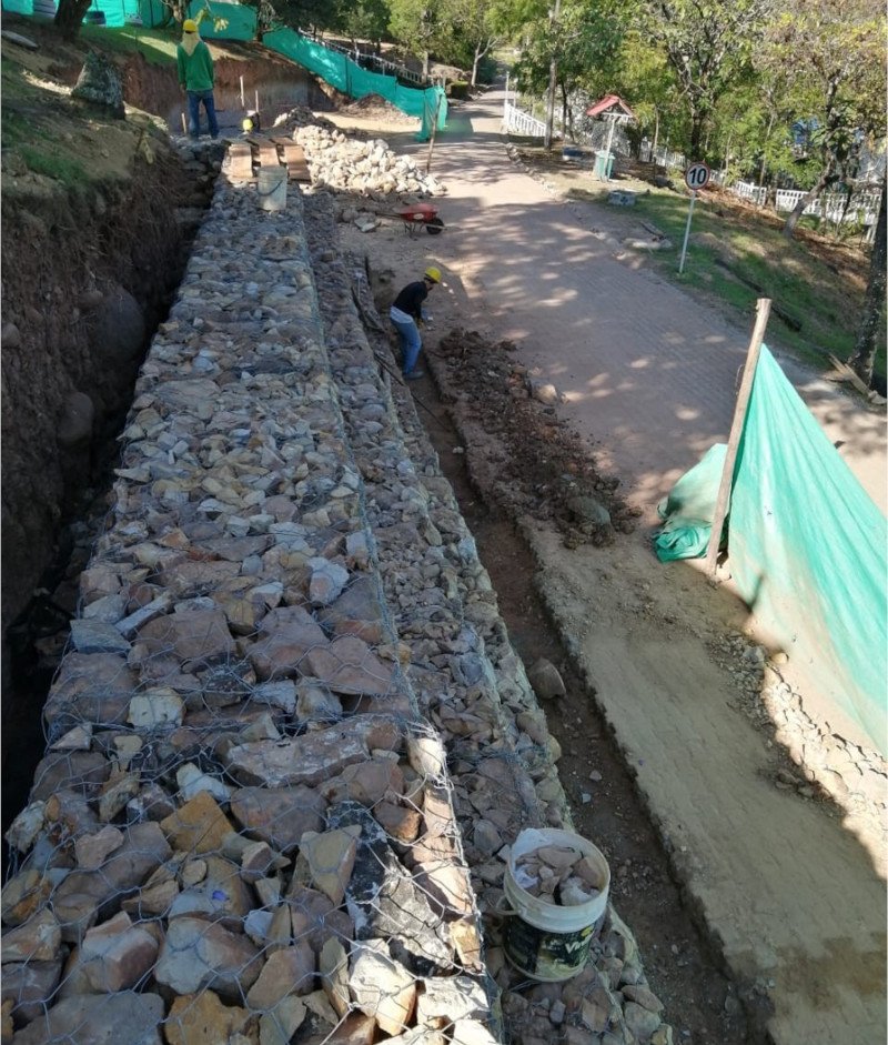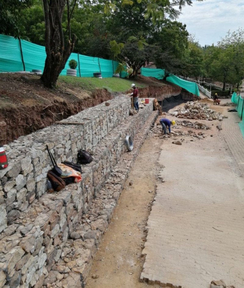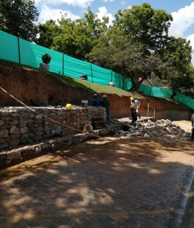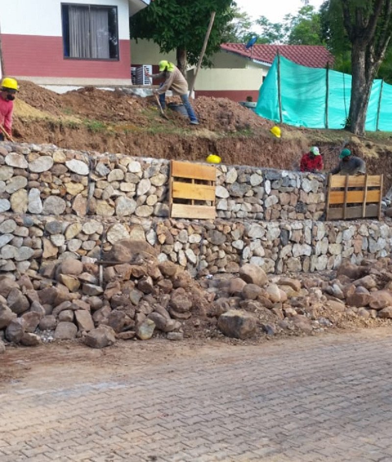 Realizamos la construcción de un muro de contención para garantizar la seguridad de las cabañas en el club de suboficiales “La Palmara” en el municipio de Melgar, Tolima.