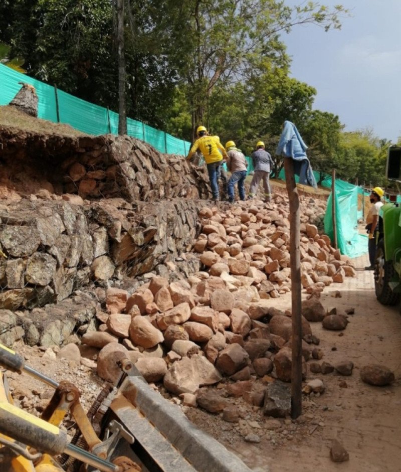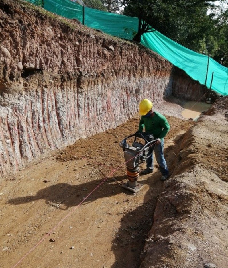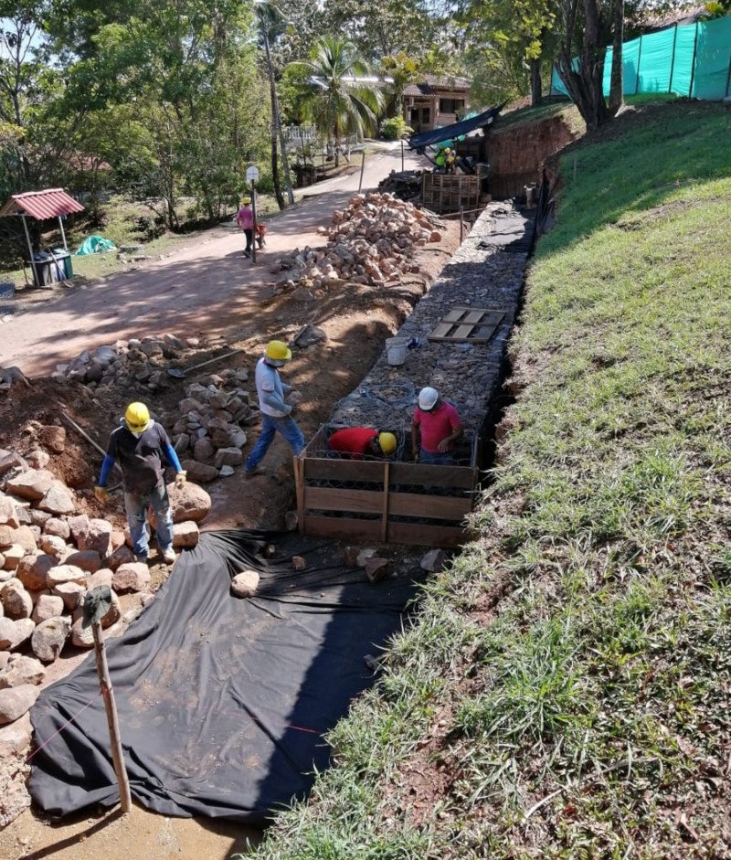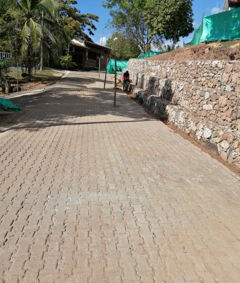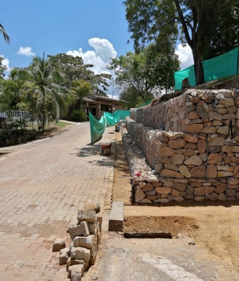Realizamos la construcción de un muro de contención para garantizar la seguridad de las cabañas en el club de suboficiales “La Palmara” en el municipio de Melgar, Tolima.
